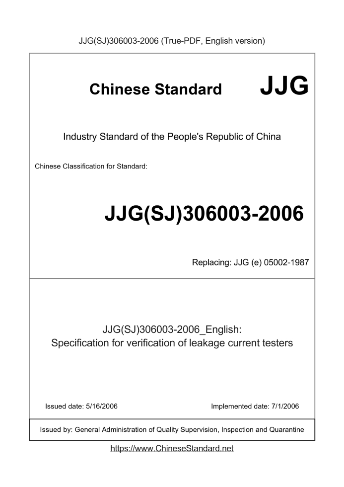 Basic dataStandard ID: JJG(SJ)306003-2006 (JJG(SJ)306003-2006)Description (Translated English): Specification for verification of leakage current testers Sector / Industry: Metrology & Measurement Industry Standard Date of Issue: 5/16/2006 Date of Implementation: 7/1/2006 Older Standard (superseded by this standard): JJG (e) 05002-1987 Regulation (derived from): National Metrology technical regulations Directory 2008 Version Issuing agency(ies): General Administration of Quality Supervision, Inspection and Quarantine Tips & Frequently Asked Questions:Question 1: How long will the true-PDF of JJG(SJ)306003-2006_English be delivered?Answer: Upon your order, we will start to translate JJG(SJ)306003-2006_English as soon as possible, and keep you informed of the progress. The lead time is typically in 9 seconds (download/delivered in 9 seconds). The lengthier the document the longer the lead time.Question 2: Can I share the purchased PDF of JJG(SJ)306003-2006_English with my colleagues?Answer: Yes. The purchased PDF of JJG(SJ)306003-2006_English will be deemed to be sold to your employer/organization who actually pays for it, including your colleagues and your employer's intranet.Question 3: Does the price include tax/VAT?Answer: Yes. Our tax invoice, downloaded/delivered in 9 seconds, includes all tax/VAT and complies with 100+ countries' tax regulations (tax exempted in 100+ countries) -- See Avoidance of Double Taxation Agreements (DTAs): List of DTAs signed between Singapore and 100+ countriesQuestion 4: Do you accept my currency other than USD?Answer: Yes. If you need your currency to be printed on the invoice, please write an email to Sales@ChineseStandard.net. In 2 working-hours, we will create a special link for you to pay in any currencies. Otherwise, follow the normal steps: Add to Cart -- Checkout -- Select your currency to pay. |