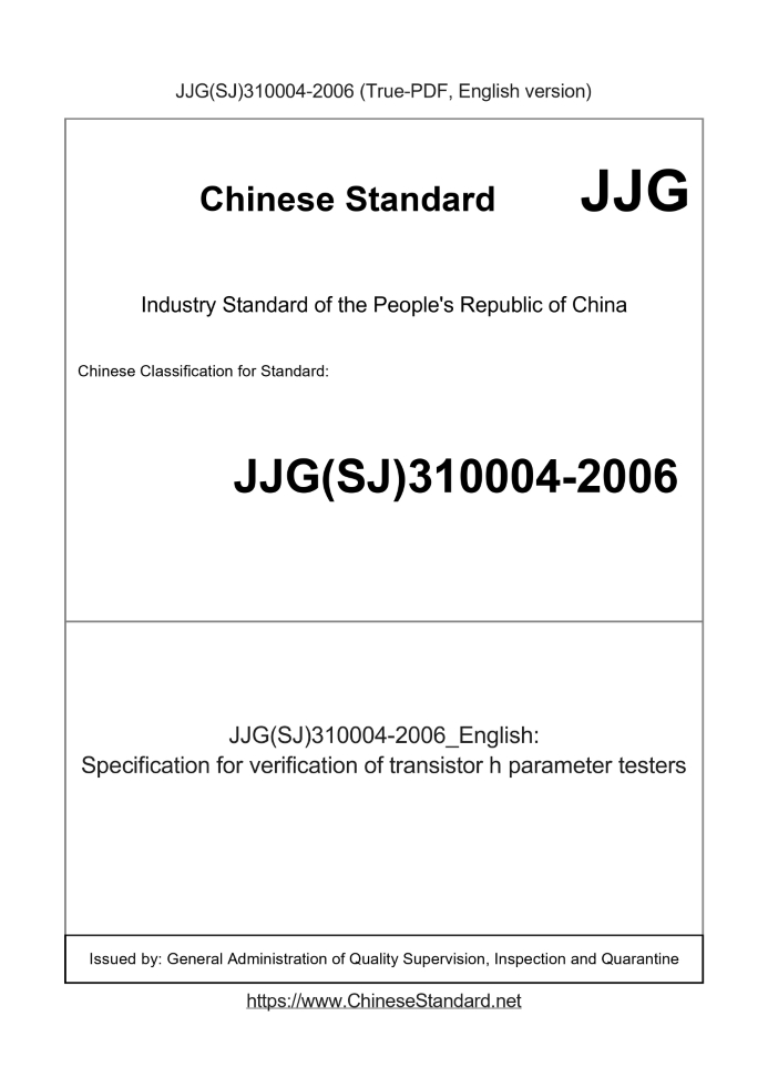 Basic dataStandard ID: JJG(SJ)310004-2006 (JJG(SJ)310004-2006)Description (Translated English): Specification for verification of transistor h parameter testers Sector / Industry: Metrology & Measurement Industry Standard Regulation (derived from): National Metrology technical regulations Directory 2008 Version Issuing agency(ies): General Administration of Quality Supervision, Inspection and Quarantine Tips & Frequently Asked Questions:Question 1: How long will the true-PDF of JJG(SJ)310004-2006_English be delivered?Answer: Upon your order, we will start to translate JJG(SJ)310004-2006_English as soon as possible, and keep you informed of the progress. The lead time is typically in 9 seconds (download/delivered in 9 seconds). The lengthier the document the longer the lead time.Question 2: Can I share the purchased PDF of JJG(SJ)310004-2006_English with my colleagues?Answer: Yes. The purchased PDF of JJG(SJ)310004-2006_English will be deemed to be sold to your employer/organization who actually pays for it, including your colleagues and your employer's intranet.Question 3: Does the price include tax/VAT?Answer: Yes. Our tax invoice, downloaded/delivered in 9 seconds, includes all tax/VAT and complies with 100+ countries' tax regulations (tax exempted in 100+ countries) -- See Avoidance of Double Taxation Agreements (DTAs): List of DTAs signed between Singapore and 100+ countriesQuestion 4: Do you accept my currency other than USD?Answer: Yes. If you need your currency to be printed on the invoice, please write an email to Sales@ChineseStandard.net. In 2 working-hours, we will create a special link for you to pay in any currencies. Otherwise, follow the normal steps: Add to Cart -- Checkout -- Select your currency to pay. |