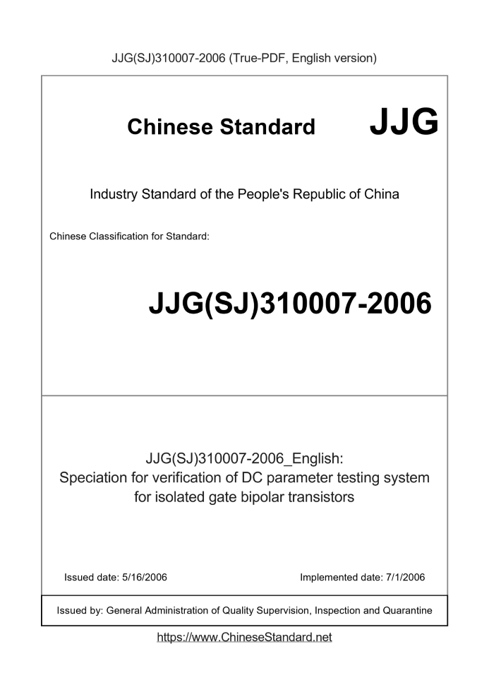 Basic dataStandard ID: JJG(SJ)310007-2006 (JJG(SJ)310007-2006)Description (Translated English): Speciation for verification of DC parameter testing system for isolated gate bipolar transistors Sector / Industry: Metrology & Measurement Industry Standard Date of Issue: 5/16/2006 Date of Implementation: 7/1/2006 Regulation (derived from): National Metrology technical regulations Directory 2008 Version Issuing agency(ies): General Administration of Quality Supervision, Inspection and Quarantine Tips & Frequently Asked Questions:Question 1: How long will the true-PDF of JJG(SJ)310007-2006_English be delivered?Answer: Upon your order, we will start to translate JJG(SJ)310007-2006_English as soon as possible, and keep you informed of the progress. The lead time is typically in 9 seconds (download/delivered in 9 seconds). The lengthier the document the longer the lead time.Question 2: Can I share the purchased PDF of JJG(SJ)310007-2006_English with my colleagues?Answer: Yes. The purchased PDF of JJG(SJ)310007-2006_English will be deemed to be sold to your employer/organization who actually pays for it, including your colleagues and your employer's intranet.Question 3: Does the price include tax/VAT?Answer: Yes. Our tax invoice, downloaded/delivered in 9 seconds, includes all tax/VAT and complies with 100+ countries' tax regulations (tax exempted in 100+ countries) -- See Avoidance of Double Taxation Agreements (DTAs): List of DTAs signed between Singapore and 100+ countriesQuestion 4: Do you accept my currency other than USD?Answer: Yes. If you need your currency to be printed on the invoice, please write an email to Sales@ChineseStandard.net. In 2 working-hours, we will create a special link for you to pay in any currencies. Otherwise, follow the normal steps: Add to Cart -- Checkout -- Select your currency to pay. |