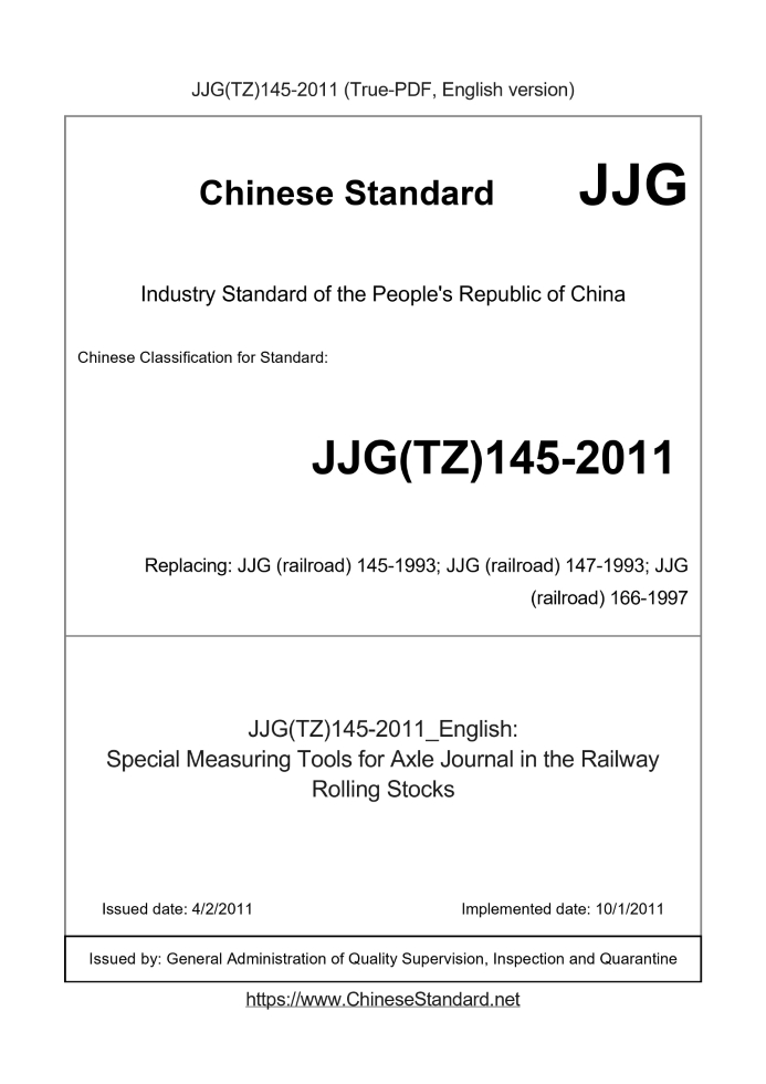 Basic dataStandard ID: JJG(TZ)145-2011 (JJG(TZ)145-2011)Description (Translated English): Special Measuring Tools for Axle Journal in the Railway Rolling Stocks Sector / Industry: Metrology & Measurement Industry Standard Date of Issue: 4/2/2011 Date of Implementation: 10/1/2011 Older Standard (superseded by this standard): JJG (railroad) 145-1993; JJG (railroad) 147-1993; JJG (railroad) 166-1997 Quoted Standard: JJG 30-2002; JJG 34-2008 Regulation (derived from): ?Railway-Science (2011) 40 Issuing agency(ies): General Administration of Quality Supervision, Inspection and Quarantine Tips & Frequently Asked Questions:Question 1: How long will the true-PDF of JJG(TZ)145-2011_English be delivered?Answer: Upon your order, we will start to translate JJG(TZ)145-2011_English as soon as possible, and keep you informed of the progress. The lead time is typically in 9 seconds (download/delivered in 9 seconds). The lengthier the document the longer the lead time.Question 2: Can I share the purchased PDF of JJG(TZ)145-2011_English with my colleagues?Answer: Yes. The purchased PDF of JJG(TZ)145-2011_English will be deemed to be sold to your employer/organization who actually pays for it, including your colleagues and your employer's intranet.Question 3: Does the price include tax/VAT?Answer: Yes. Our tax invoice, downloaded/delivered in 9 seconds, includes all tax/VAT and complies with 100+ countries' tax regulations (tax exempted in 100+ countries) -- See Avoidance of Double Taxation Agreements (DTAs): List of DTAs signed between Singapore and 100+ countriesQuestion 4: Do you accept my currency other than USD?Answer: Yes. If you need your currency to be printed on the invoice, please write an email to Sales@ChineseStandard.net. In 2 working-hours, we will create a special link for you to pay in any currencies. Otherwise, follow the normal steps: Add to Cart -- Checkout -- Select your currency to pay. |