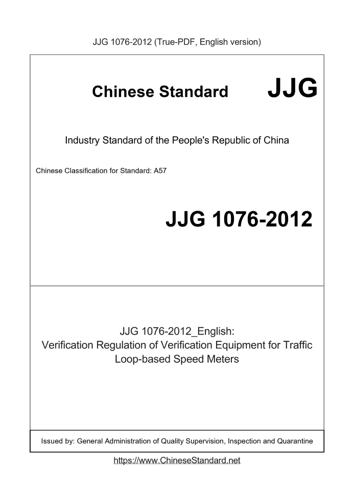 Delivery: <= 3 days. True-PDF full-copy in English will be manually translated and delivered via email. JJG 1076-2012: Verification Regulation of Verification Equipment for Traffic Loop-based Speed Meters Status: Valid