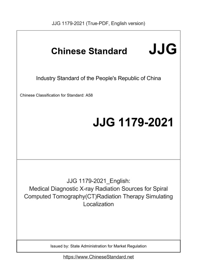 Delivery: <= 4 days. True-PDF full-copy in English will be manually translated and delivered via email. JJG 1179-2021: Medical Diagnostic X-ray Radiation Sources for Spiral Computed Tomography(CT)Radiation Therapy Simulating Localization Status: Valid