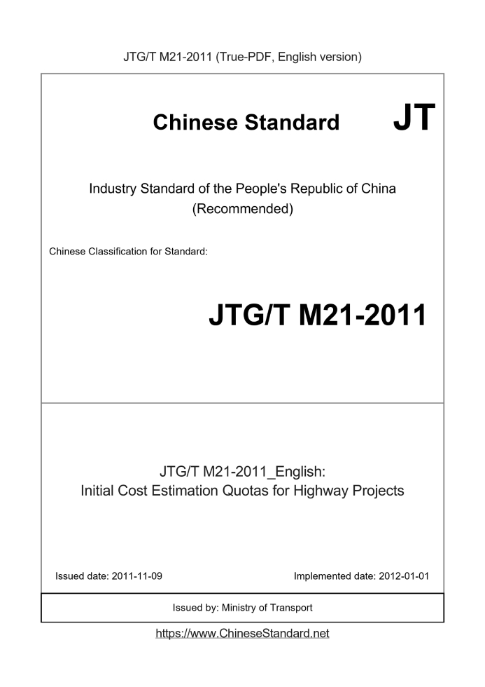 Basic dataStandard ID: JTG/T M21-2011 (JTG/TM21-2011)Description (Translated English): Initial Cost Estimation Quotas for Highway Projects Sector / Industry: Highway & Transportation Industry Standard (Recommended) Word Count Estimation: 318,341 Date of Issue: 2011-11-09 Date of Implementation: 2012-01-01 Regulation (derived from): ?Ministry of Transport Announcement 2011 No.82 Issuing agency(ies): Ministry of Transport Summary: This standard applies to new highway infrastructure, alterations. This standard is artificial, materials, indicators Jixietaiban consumption performance. Preparing the estimates, its labor costs, materials, mechanical royalties should be required to "highway project investment estimate preparation methods infrastructure projects" is calculated. This standard subgrade, tunnel project, , culvert project, traffic engineering and facilities along, , Cross Project, bridge engineering road works temporary works of eight chapters and appendices. Tips & Frequently Asked Questions:Question 1: How long will the true-PDF of JTGTM21-2011_English be delivered?Answer: Upon your order, we will start to translate JTGTM21-2011_English as soon as possible, and keep you informed of the progress. The lead time is typically in 9 seconds (download/delivered in 9 seconds). The lengthier the document the longer the lead time.Question 2: Can I share the purchased PDF of JTGTM21-2011_English with my colleagues?Answer: Yes. The purchased PDF of JTGTM21-2011_English will be deemed to be sold to your employer/organization who actually pays for it, including your colleagues and your employer's intranet.Question 3: Does the price include tax/VAT?Answer: Yes. Our tax invoice, downloaded/delivered in 9 seconds, includes all tax/VAT and complies with 100+ countries' tax regulations (tax exempted in 100+ countries) -- See Avoidance of Double Taxation Agreements (DTAs): List of DTAs signed between Singapore and 100+ countriesQuestion 4: Do you accept my currency other than USD?Answer: Yes. If you need your currency to be printed on the invoice, please write an email to Sales@ChineseStandard.net. In 2 working-hours, we will create a special link for you to pay in any currencies. Otherwise, follow the normal steps: Add to Cart -- Checkout -- Select your currency to pay. |