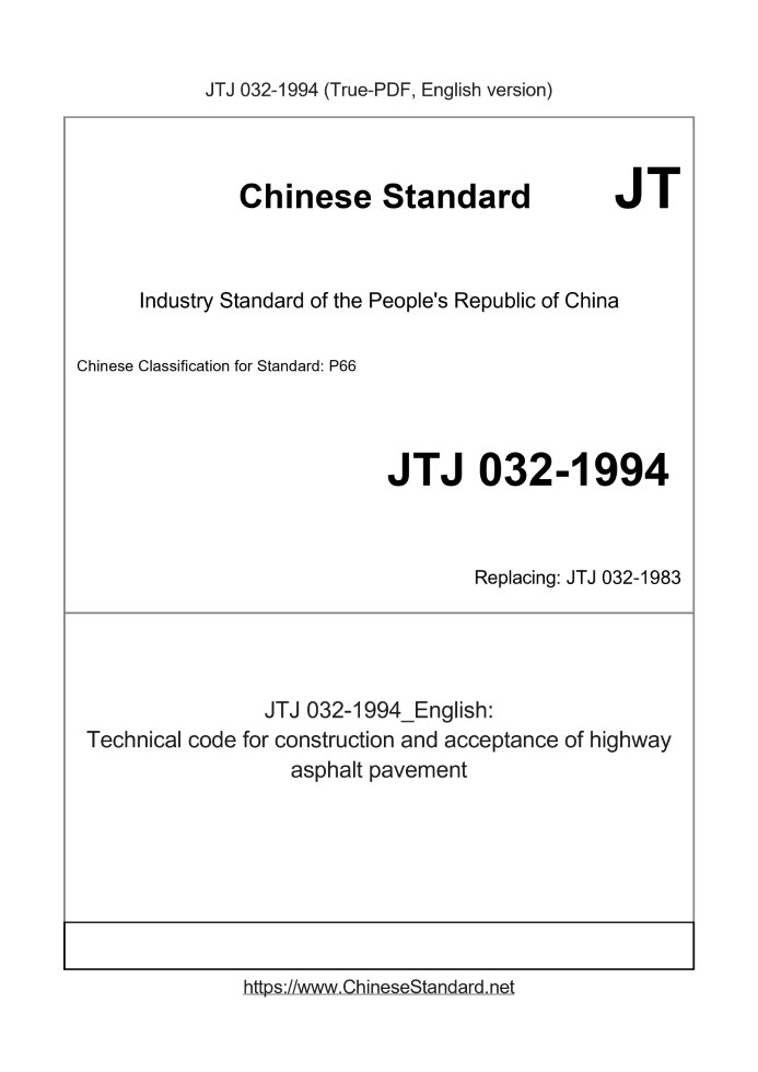 Basic dataStandard ID: JTJ 032-1994 (JTJ032-1994)Description (Translated English): Technical code for construction and acceptance of highway asphalt pavement Sector / Industry: Highway & Transportation Industry Standard Classification of Chinese Standard: P66 Word Count Estimation: 172,130 Older Standard (superseded by this standard): JTJ 032-1983 Regulation (derived from): Ministry of Transport Notice 2004 No. 24; Ministry of Transport Notice 2013 No. 8 Tips & Frequently Asked Questions:Question 1: How long will the true-PDF of JTJ032-1994_English be delivered?Answer: Upon your order, we will start to translate JTJ032-1994_English as soon as possible, and keep you informed of the progress. The lead time is typically 1 ~ 3 working days. The lengthier the document the longer the lead time.Question 2: Can I share the purchased PDF of JTJ032-1994_English with my colleagues?Answer: Yes. The purchased PDF of JTJ032-1994_English will be deemed to be sold to your employer/organization who actually pays for it, including your colleagues and your employer's intranet.Question 3: Does the price include tax/VAT?Answer: Yes. Our tax invoice, downloaded/delivered in 9 seconds, includes all tax/VAT and complies with 100+ countries' tax regulations (tax exempted in 100+ countries) -- See Avoidance of Double Taxation Agreements (DTAs): List of DTAs signed between Singapore and 100+ countriesQuestion 4: Do you accept my currency other than USD?Answer: Yes. If you need your currency to be printed on the invoice, please write an email to Sales@ChineseStandard.net. In 2 working-hours, we will create a special link for you to pay in any currencies. Otherwise, follow the normal steps: Add to Cart -- Checkout -- Select your currency to pay. |