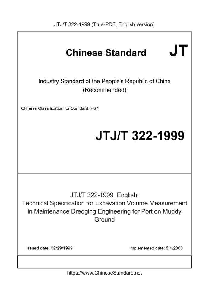 | JTJT322-1999 English PDFUS$839.00 ยท In stock Delivery: <= 4 days. True-PDF full-copy in English will be manually translated and delivered via email. JTJT322-1999: Technical Specification for Excavation Volume Measurement in Maintenance Dredging Engineering for Port on Muddy Ground Status: Obsolete