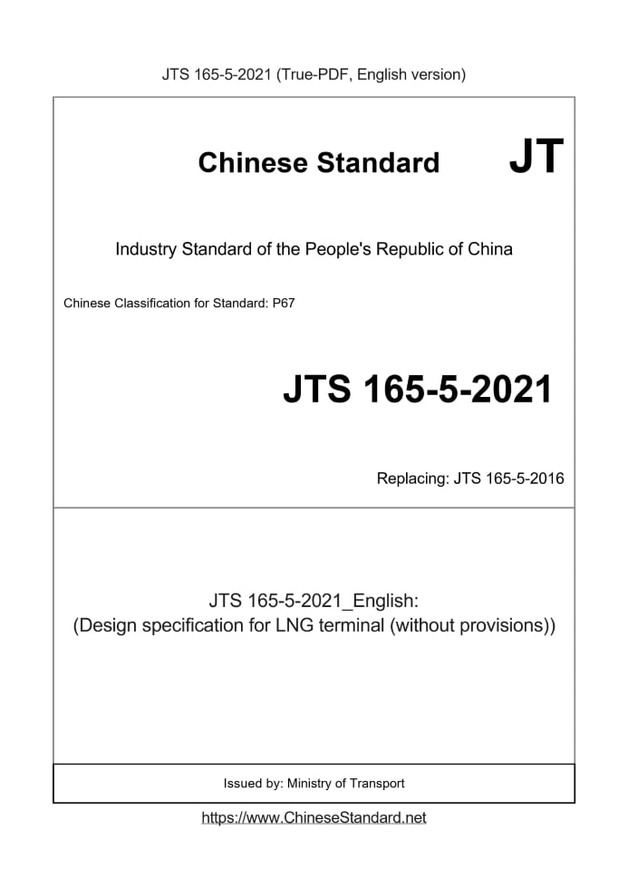 Delivery: <= 7 days. True-PDF full-copy in English will be manually translated and delivered via email. JTS165-5-2021: (Design specification for LNG terminal (without provisions)) Status: Valid JTS165-5: Historical versions