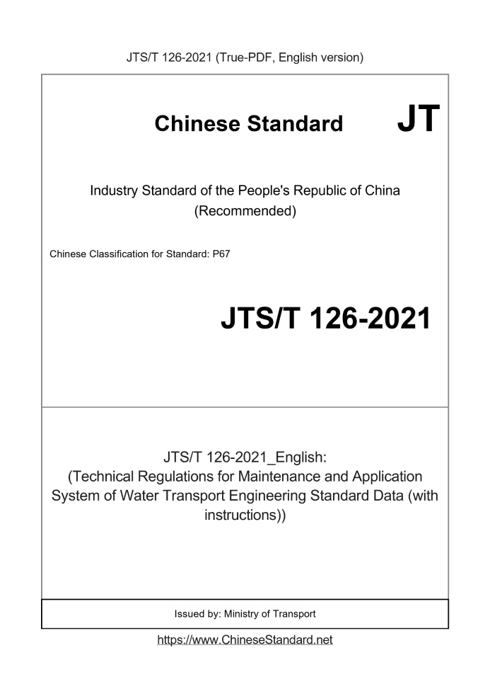 Delivery: <= 5 days. True-PDF full-copy in English will be manually translated and delivered via email. JTST126-2021: (Technical Regulations for Maintenance and Application System of Water Transport Engineering Standard Data (with instructions)) Status: Valid