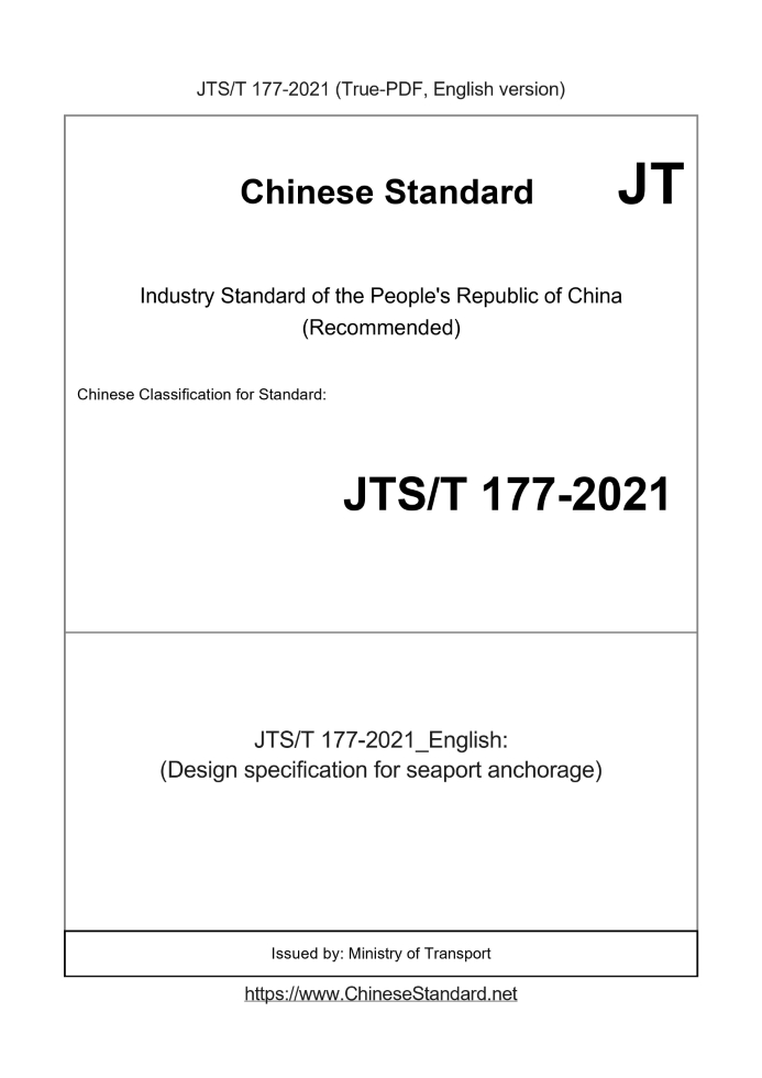 Delivery: <= 7 days. True-PDF full-copy in English will be manually translated and delivered via email. JTST177-2021: (Design specification for seaport anchorage) Status: Valid