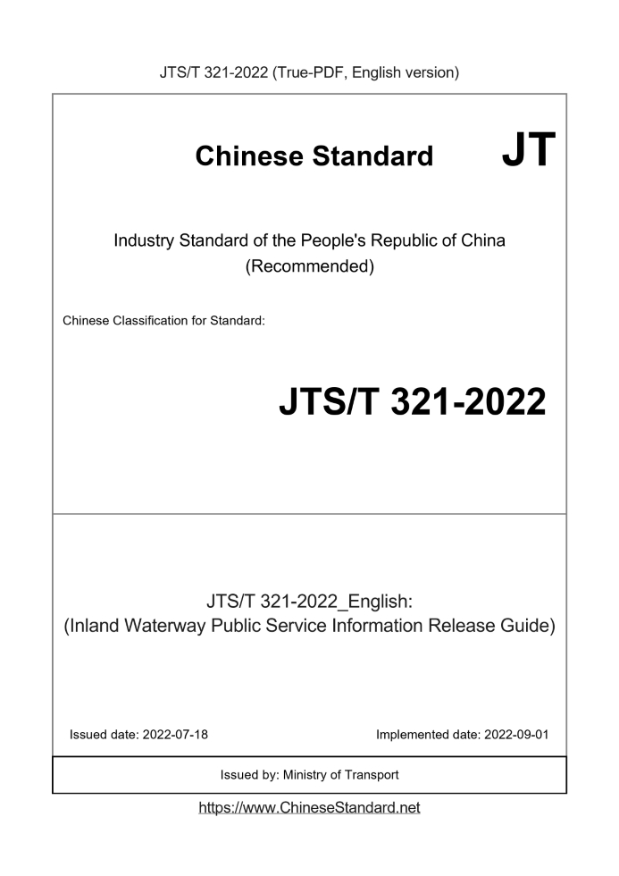 Delivery: <= 6 days. True-PDF full-copy in English will be manually translated and delivered via email. JTST321-2022: (Inland Waterway Public Service Information Release Guide) Status: Valid