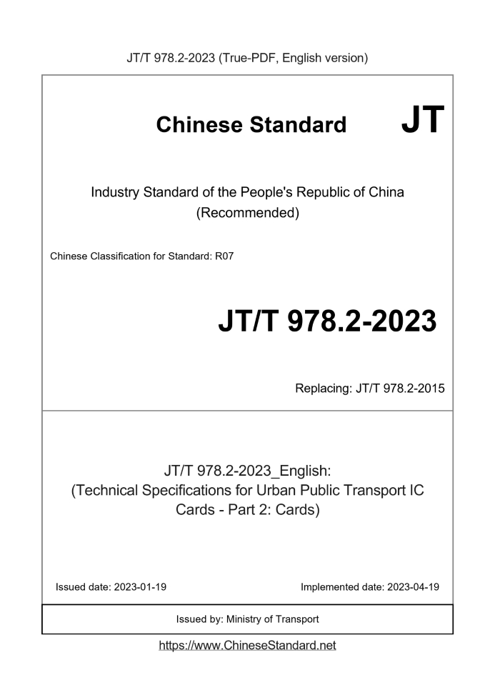 Basic dataStandard ID: JT/T 978.2-2023 (JT/T978.2-2023)Description (Translated English): (Technical Specifications for Urban Public Transport IC Cards - Part 2: Cards) Sector / Industry: Highway & Transportation Industry Standard (Recommended) Classification of Chinese Standard: R07 Classification of International Standard: 03.220.20, 35.240.15 Word Count Estimation: 156,129 Date of Issue: 2023-01-19 Date of Implementation: 2023-04-19 Issuing agency(ies): Ministry of Transport Summary: This standard specifies the physical requirements of urban public transport IC cards, card file requirements, and requirements for electronic cash applications, electronic wallet applications, and electronic cash dual-currency applications. This standard applies to the design, development and production of urban public transport IC cards and virtual cards. Tips & Frequently Asked Questions:Question 1: How long will the true-PDF of JT/T 978.2-2023_English be delivered?Answer: Upon your order, we will start to translate JT/T 978.2-2023_English as soon as possible, and keep you informed of the progress. The lead time is typically 1 ~ 3 working days. The lengthier the document the longer the lead time.Question 2: Can I share the purchased PDF of JT/T 978.2-2023_English with my colleagues?Answer: Yes. The purchased PDF of JT/T 978.2-2023_English will be deemed to be sold to your employer/organization who actually pays for it, including your colleagues and your employer's intranet.Question 3: Does the price include tax/VAT?Answer: Yes. Our tax invoice, downloaded/delivered in 9 seconds, includes all tax/VAT and complies with 100+ countries' tax regulations (tax exempted in 100+ countries) -- See Avoidance of Double Taxation Agreements (DTAs): List of DTAs signed between Singapore and 100+ countriesQuestion 4: Do you accept my currency other than USD?Answer: Yes. If you need your currency to be printed on the invoice, please write an email to Sales@ChineseStandard.net. In 2 working-hours, we will create a special link for you to pay in any currencies. Otherwise, follow the normal steps: Add to Cart -- Checkout -- Select your currency to pay.Question 5: Should I purchase the latest version JT/T 978.2-2023?Answer: Yes. Unless special scenarios such as technical constraints or academic study, you should always prioritize to purchase the latest version JT/T 978.2-2023 even if the enforcement date is in future. Complying with the latest version means that, by default, it also complies with all the earlier versions, technically. |
