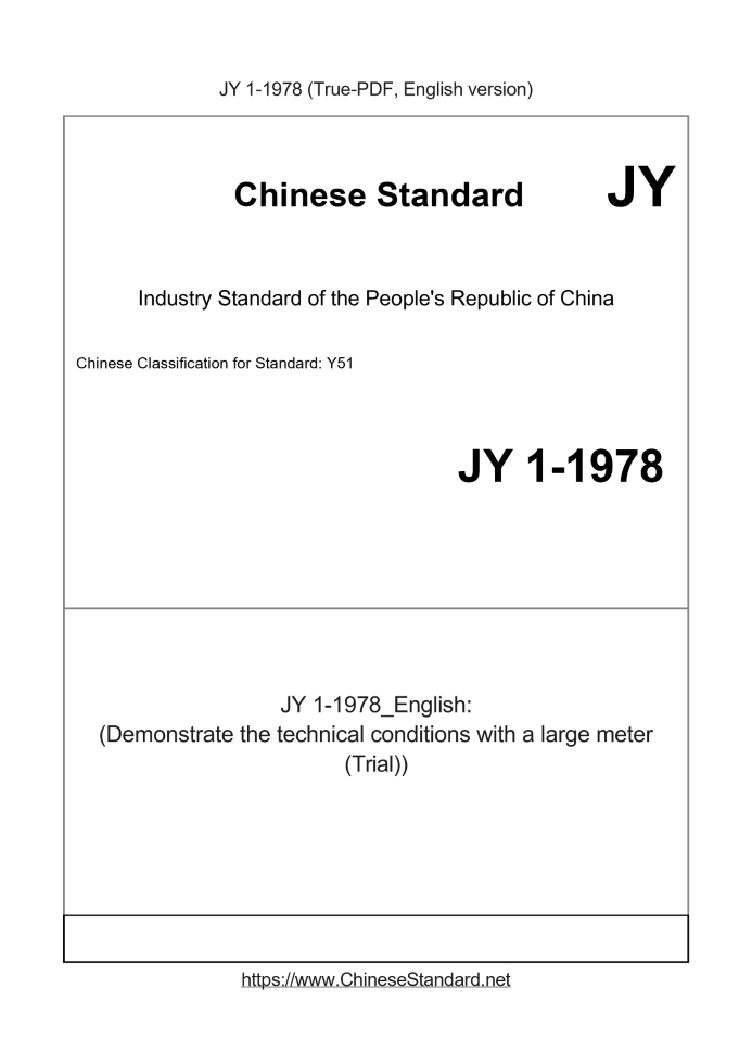 Delivery: <= 2 days. True-PDF full-copy in English will be manually translated and delivered via email. JY 1-1978: (Demonstrate the technical conditions with a large meter (Trial)) Status: Obsolete