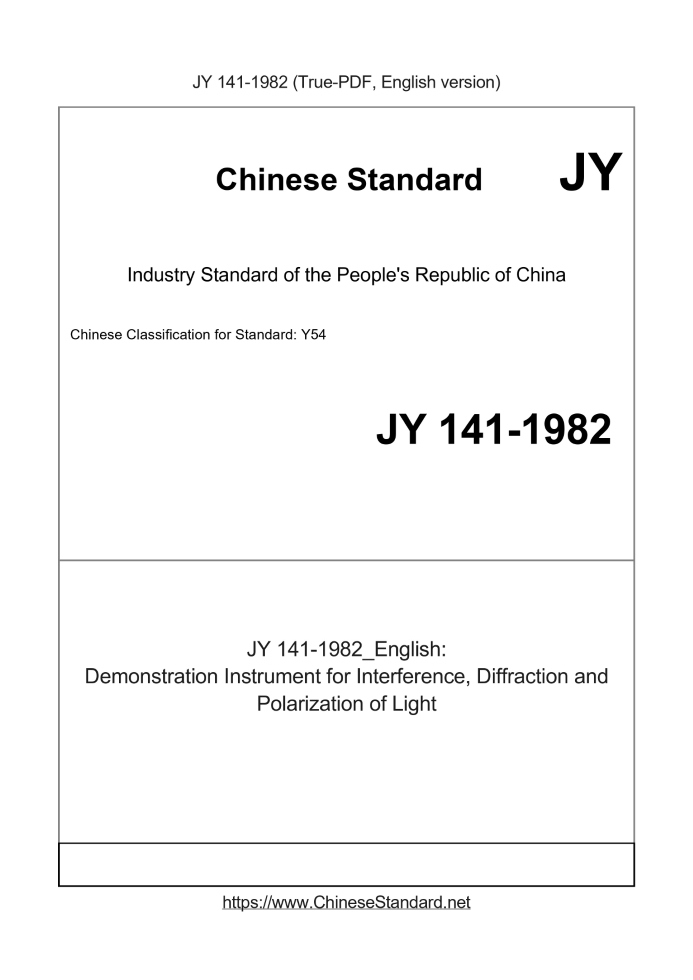 | JY 141-1982 English PDFUS$239.00 ยท In stock Delivery: <= 3 days. True-PDF full-copy in English will be manually translated and delivered via email. JY 141-1982: Demonstration Instrument for Interference, Diffraction and Polarization of Light