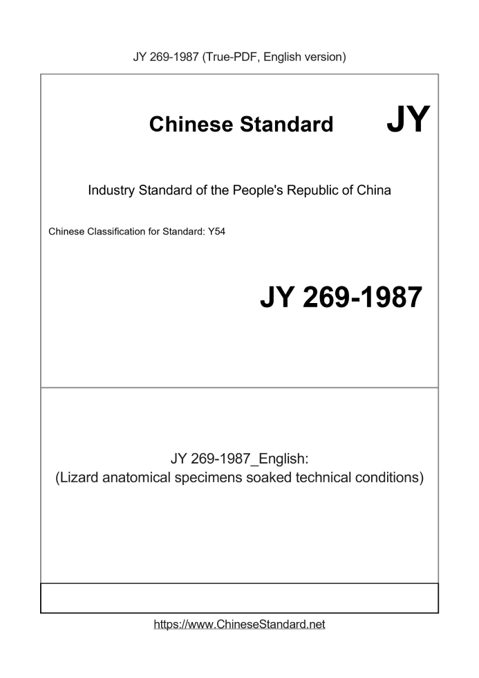 Basic dataStandard ID: JY 269-1987 (JY269-1987)Description (Translated English): (Lizard anatomical specimens soaked technical conditions) Sector / Industry: Education Industry Standard Classification of Chinese Standard: Y54 Tips & Frequently Asked Questions:Question 1: How long will the true-PDF of JY 269-1987_English be delivered?Answer: Upon your order, we will start to translate JY 269-1987_English as soon as possible, and keep you informed of the progress. The lead time is typically 1 ~ 3 working days. The lengthier the document the longer the lead time.Question 2: Can I share the purchased PDF of JY 269-1987_English with my colleagues?Answer: Yes. The purchased PDF of JY 269-1987_English will be deemed to be sold to your employer/organization who actually pays for it, including your colleagues and your employer's intranet.Question 3: Does the price include tax/VAT?Answer: Yes. Our tax invoice, downloaded/delivered in 9 seconds, includes all tax/VAT and complies with 100+ countries' tax regulations (tax exempted in 100+ countries) -- See Avoidance of Double Taxation Agreements (DTAs): List of DTAs signed between Singapore and 100+ countriesQuestion 4: Do you accept my currency other than USD?Answer: Yes. If you need your currency to be printed on the invoice, please write an email to Sales@ChineseStandard.net. In 2 working-hours, we will create a special link for you to pay in any currencies. Otherwise, follow the normal steps: Add to Cart -- Checkout -- Select your currency to pay. |