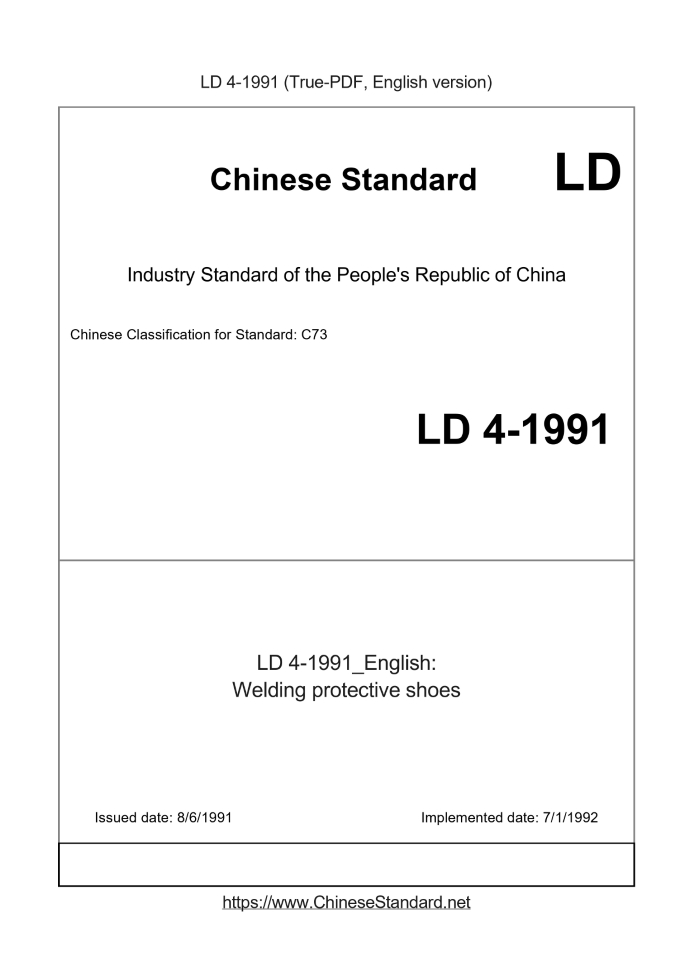 Delivery: <= 2 days. True-PDF full-copy in English will be manually translated and delivered via email. LD4-1991: Welding protective shoes