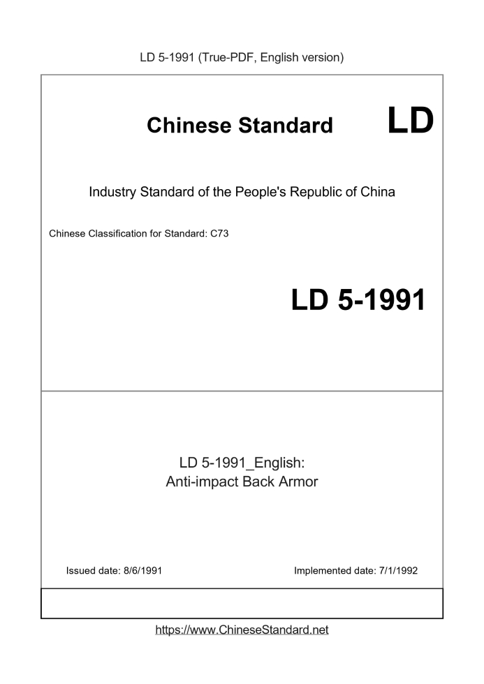 Delivery: <= 3 days. True-PDF full-copy in English will be manually translated and delivered via email. LD5-1991: Anti-impact Back Armor Status: Obsolete