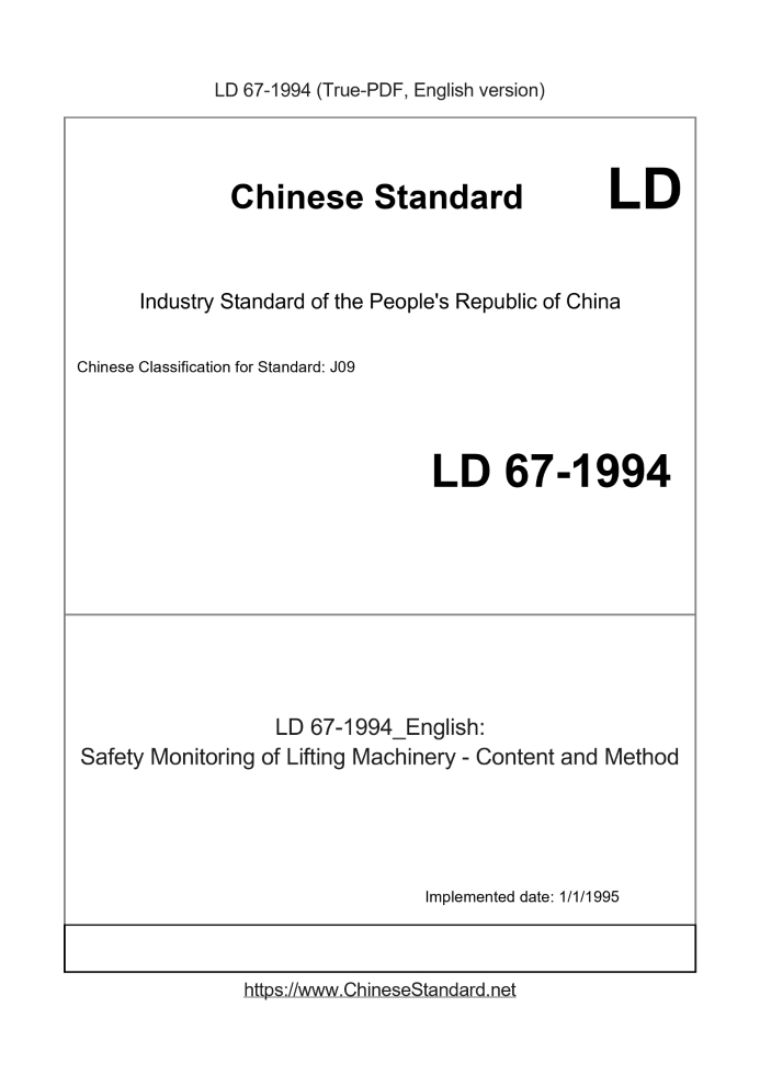 Basic dataStandard ID: LD 67-1994 (LD67-1994)Description (Translated English): Safety Monitoring of Lifting Machinery - Content and Method Sector / Industry: Chinese Industry Standard Classification of Chinese Standard: J09 Date of Implementation: 1/1/1995 Tips & Frequently Asked Questions:Question 1: How long will the true-PDF of LD67-1994_English be delivered?Answer: Upon your order, we will start to translate LD67-1994_English as soon as possible, and keep you informed of the progress. The lead time is typically 1 ~ 3 working days. The lengthier the document the longer the lead time.Question 2: Can I share the purchased PDF of LD67-1994_English with my colleagues?Answer: Yes. The purchased PDF of LD67-1994_English will be deemed to be sold to your employer/organization who actually pays for it, including your colleagues and your employer's intranet.Question 3: Does the price include tax/VAT?Answer: Yes. Our tax invoice, downloaded/delivered in 9 seconds, includes all tax/VAT and complies with 100+ countries' tax regulations (tax exempted in 100+ countries) -- See Avoidance of Double Taxation Agreements (DTAs): List of DTAs signed between Singapore and 100+ countriesQuestion 4: Do you accept my currency other than USD?Answer: Yes. If you need your currency to be printed on the invoice, please write an email to Sales@ChineseStandard.net. In 2 working-hours, we will create a special link for you to pay in any currencies. Otherwise, follow the normal steps: Add to Cart -- Checkout -- Select your currency to pay. |