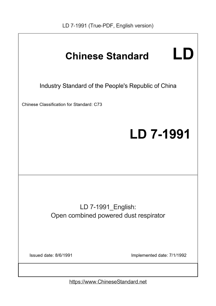 Delivery: <= 2 days. True-PDF full-copy in English will be manually translated and delivered via email. LD7-1991: Open combined powered dust respirator