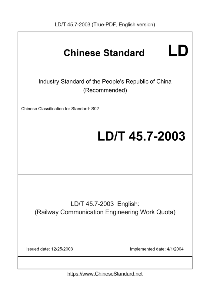 Basic dataStandard ID: LD/T 45.7-2003 (LD/T45.7-2003)Description (Translated English): (Railway Communication Engineering Work Quota) Sector / Industry: Chinese Industry Standard (Recommended) Classification of Chinese Standard: S02 Date of Issue: 12/25/2003 Date of Implementation: 4/1/2004 Regulation (derived from): 2004 No. 12 Industry-Standard Circular Tips & Frequently Asked Questions:Question 1: How long will the true-PDF of LDT45.7-2003_English be delivered?Answer: Upon your order, we will start to translate LDT45.7-2003_English as soon as possible, and keep you informed of the progress. The lead time is typically 1 ~ 3 working days. The lengthier the document the longer the lead time.Question 2: Can I share the purchased PDF of LDT45.7-2003_English with my colleagues?Answer: Yes. The purchased PDF of LDT45.7-2003_English will be deemed to be sold to your employer/organization who actually pays for it, including your colleagues and your employer's intranet.Question 3: Does the price include tax/VAT?Answer: Yes. Our tax invoice, downloaded/delivered in 9 seconds, includes all tax/VAT and complies with 100+ countries' tax regulations (tax exempted in 100+ countries) -- See Avoidance of Double Taxation Agreements (DTAs): List of DTAs signed between Singapore and 100+ countriesQuestion 4: Do you accept my currency other than USD?Answer: Yes. If you need your currency to be printed on the invoice, please write an email to Sales@ChineseStandard.net. In 2 working-hours, we will create a special link for you to pay in any currencies. Otherwise, follow the normal steps: Add to Cart -- Checkout -- Select your currency to pay. |