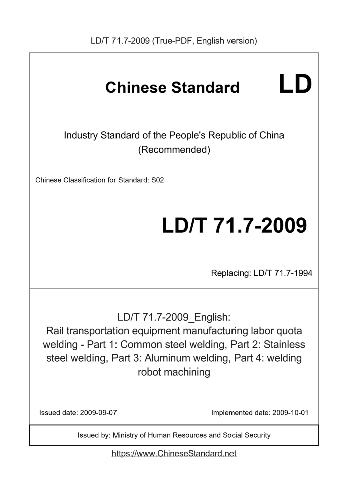 Basic dataStandard ID: LD/T 71.7-2009 (LD/T71.7-2009)Description (Translated English): Rail transportation equipment manufacturing labor quota welding - Part 1: Common steel welding, Part 2: Stainless steel welding, Part 3: Aluminum welding, Part 4: welding robot machining Sector / Industry: Chinese Industry Standard (Recommended) Classification of Chinese Standard: S02 Date of Issue: 2009-09-07 Date of Implementation: 2009-10-01 Older Standard (superseded by this standard): LD/T 71.7-1994 Regulation (derived from): Line marked filing Notice No. 11 of 2009 Issuing agency(ies): Ministry of Human Resources and Social Security Tips & Frequently Asked Questions:Question 1: How long will the true-PDF of LDT71.7-2009_English be delivered?Answer: Upon your order, we will start to translate LDT71.7-2009_English as soon as possible, and keep you informed of the progress. The lead time is typically 1 ~ 3 working days. The lengthier the document the longer the lead time.Question 2: Can I share the purchased PDF of LDT71.7-2009_English with my colleagues?Answer: Yes. The purchased PDF of LDT71.7-2009_English will be deemed to be sold to your employer/organization who actually pays for it, including your colleagues and your employer's intranet.Question 3: Does the price include tax/VAT?Answer: Yes. Our tax invoice, downloaded/delivered in 9 seconds, includes all tax/VAT and complies with 100+ countries' tax regulations (tax exempted in 100+ countries) -- See Avoidance of Double Taxation Agreements (DTAs): List of DTAs signed between Singapore and 100+ countriesQuestion 4: Do you accept my currency other than USD?Answer: Yes. If you need your currency to be printed on the invoice, please write an email to Sales@ChineseStandard.net. In 2 working-hours, we will create a special link for you to pay in any currencies. Otherwise, follow the normal steps: Add to Cart -- Checkout -- Select your currency to pay. |