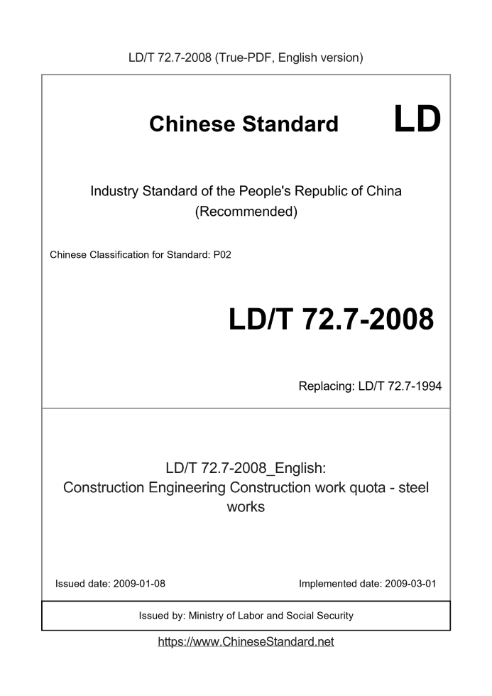Delivery: <= 7 days. True-PDF full-copy in English will be manually translated and delivered via email. LDT72.7-2008: Construction Engineering Construction work quota - steel works Status: Valid
