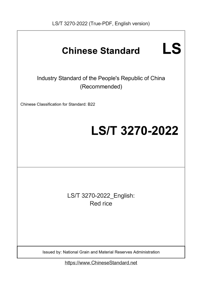 Delivery: <= 3 days. True-PDF full-copy in English will be manually translated and delivered via email. LST3270-2022: Red rice Status: Valid