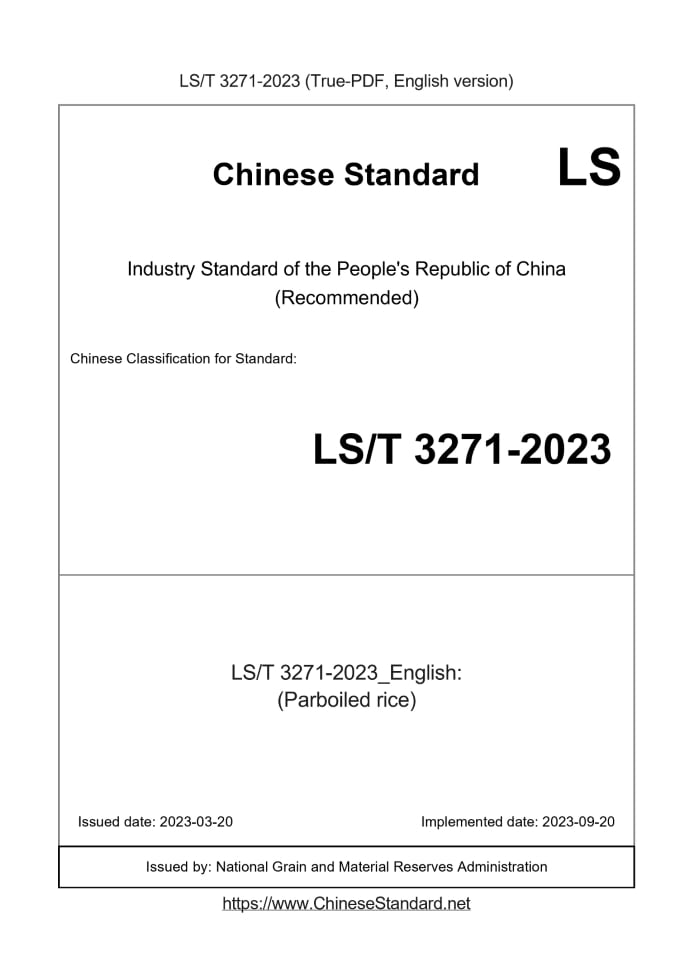 Delivery: <= 3 days. True-PDF full-copy in English will be manually translated and delivered via email. LST3271-2023: (Parboiled rice) Status: Valid