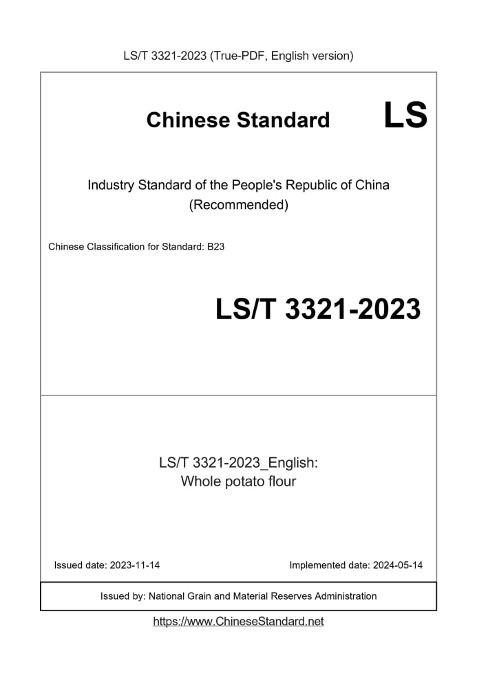 Delivery: <= 3 days. True-PDF full-copy in English will be manually translated and delivered via email. LST3321-2023: Whole potato flour Status: Valid
