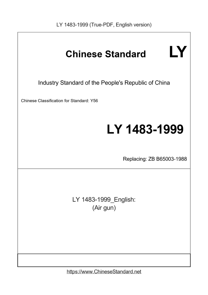 Basic dataStandard ID: LY 1483-1999 (LY1483-1999)Description (Translated English): (Air gun) Sector / Industry: Forestry Industry Standard Classification of Chinese Standard: Y56 Older Standard (superseded by this standard): ZB B65003-1988 Regulation (derived from): State-Standard-Committee-Agriculture-Letter [2005] 12 Tips & Frequently Asked Questions:Question 1: How long will the true-PDF of LY 1483-1999_English be delivered?Answer: Upon your order, we will start to translate LY 1483-1999_English as soon as possible, and keep you informed of the progress. The lead time is typically 1 ~ 3 working days. The lengthier the document the longer the lead time.Question 2: Can I share the purchased PDF of LY 1483-1999_English with my colleagues?Answer: Yes. The purchased PDF of LY 1483-1999_English will be deemed to be sold to your employer/organization who actually pays for it, including your colleagues and your employer's intranet.Question 3: Does the price include tax/VAT?Answer: Yes. Our tax invoice, downloaded/delivered in 9 seconds, includes all tax/VAT and complies with 100+ countries' tax regulations (tax exempted in 100+ countries) -- See Avoidance of Double Taxation Agreements (DTAs): List of DTAs signed between Singapore and 100+ countriesQuestion 4: Do you accept my currency other than USD?Answer: Yes. If you need your currency to be printed on the invoice, please write an email to Sales@ChineseStandard.net. In 2 working-hours, we will create a special link for you to pay in any currencies. Otherwise, follow the normal steps: Add to Cart -- Checkout -- Select your currency to pay. |