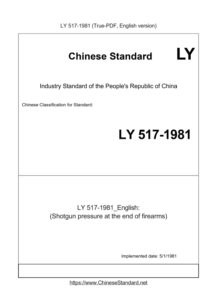Basic dataStandard ID: LY 517-1981 (LY517-1981)Description (Translated English): (Shotgun pressure at the end of firearms) Sector / Industry: Forestry Industry Standard Date of Implementation: 5/1/1981 Tips & Frequently Asked Questions:Question 1: How long will the true-PDF of LY 517-1981_English be delivered?Answer: Upon your order, we will start to translate LY 517-1981_English as soon as possible, and keep you informed of the progress. The lead time is typically 1 ~ 3 working days. The lengthier the document the longer the lead time.Question 2: Can I share the purchased PDF of LY 517-1981_English with my colleagues?Answer: Yes. The purchased PDF of LY 517-1981_English will be deemed to be sold to your employer/organization who actually pays for it, including your colleagues and your employer's intranet.Question 3: Does the price include tax/VAT?Answer: Yes. Our tax invoice, downloaded/delivered in 9 seconds, includes all tax/VAT and complies with 100+ countries' tax regulations (tax exempted in 100+ countries) -- See Avoidance of Double Taxation Agreements (DTAs): List of DTAs signed between Singapore and 100+ countriesQuestion 4: Do you accept my currency other than USD?Answer: Yes. If you need your currency to be printed on the invoice, please write an email to Sales@ChineseStandard.net. In 2 working-hours, we will create a special link for you to pay in any currencies. Otherwise, follow the normal steps: Add to Cart -- Checkout -- Select your currency to pay. |