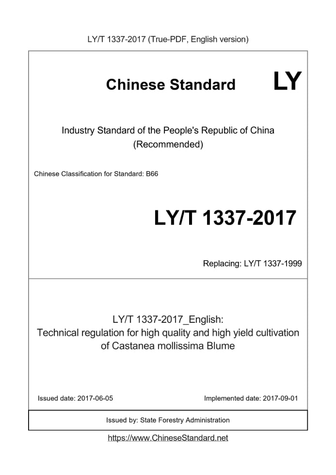 LY/T 1337-2017: Technical regulation for high quality and high yield cultivation of Castanea mollissima Blume