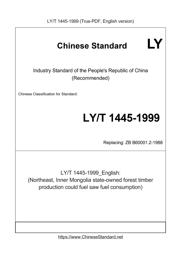 Delivery: <= 2 days. True-PDF full-copy in English will be manually translated and delivered via email. LY/T 1445-1999: (Northeast, Inner Mongolia state-owned forest timber production could fuel saw fuel consumption) Status: Obsolete