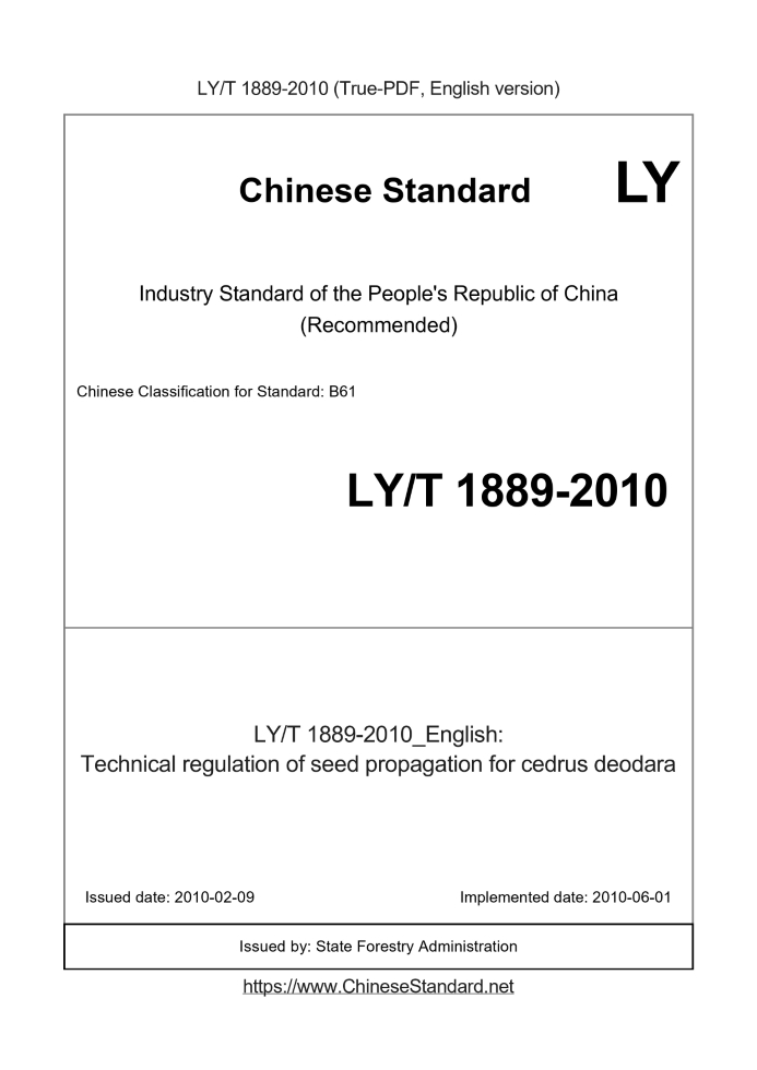 Delivery: <= 2 days. True-PDF full-copy in English will be manually translated and delivered via email. LY/T 1889-2010: Technical regulation of seed propagation for cedrus deodara