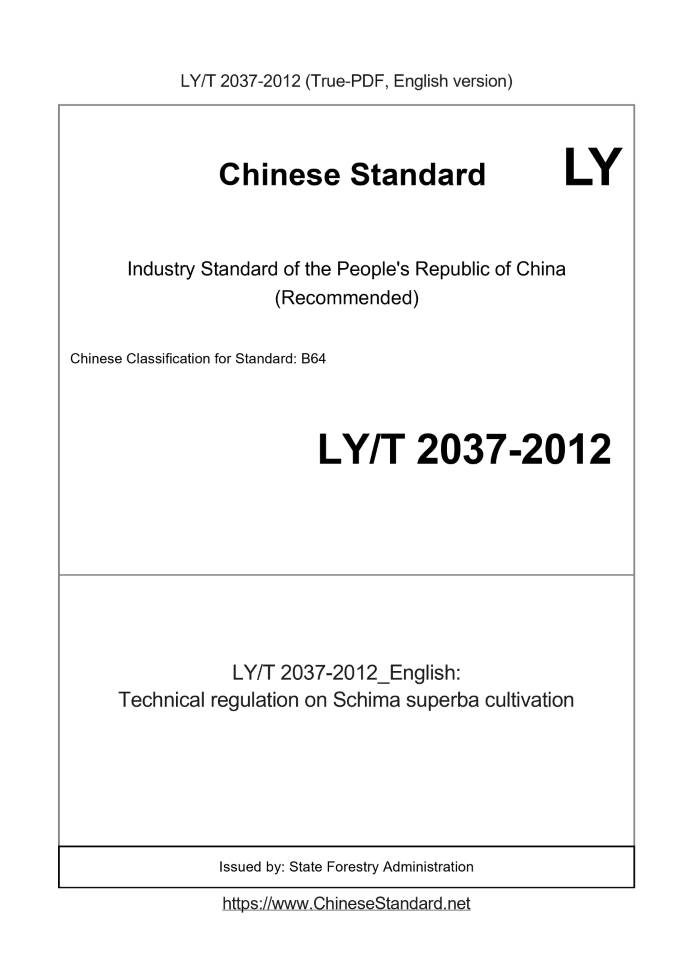 Delivery: <= 3 days. True-PDF full-copy in English will be manually translated and delivered via email. LY/T 2037-2012: Technical regulation on Schima superba cultivation Status: Valid