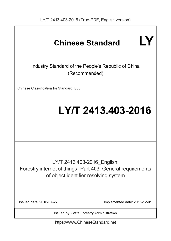 | LY/T 2413.403-2016 English PDFUS$259.00 ยท In stock Delivery: <= 3 days. True-PDF full-copy in English will be manually translated and delivered via email. LY/T 2413.403-2016: Forestry internet of things--Part 403: General requirements of object identifier resolving system Status: Valid