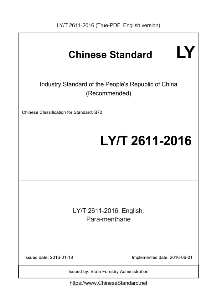 Delivery: <= 3 days. True-PDF full-copy in English will be manually translated and delivered via email. LY/T 2611-2016: Para-menthane Status: Valid