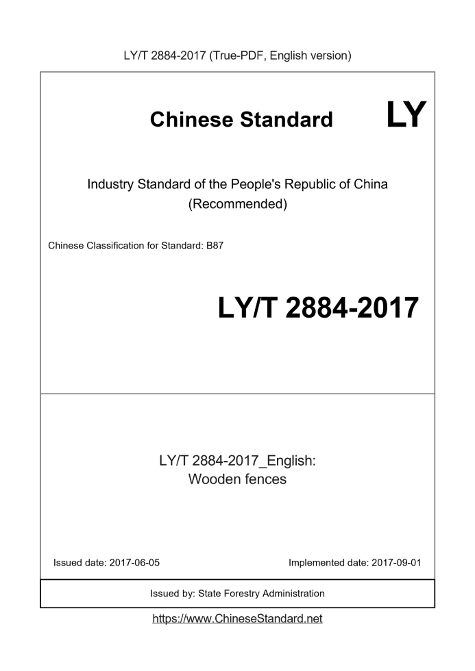 Delivery: <= 3 days. True-PDF full-copy in English will be manually translated and delivered via email. LY/T 2884-2017: Wooden fences Status: Valid