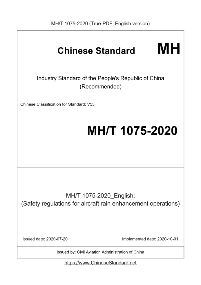Delivery: <= 3 days. True-PDF full-copy in English will be manually translated and delivered via email. MHT1075-2020: (Safety regulations for aircraft rain enhancement operations) Status: Valid