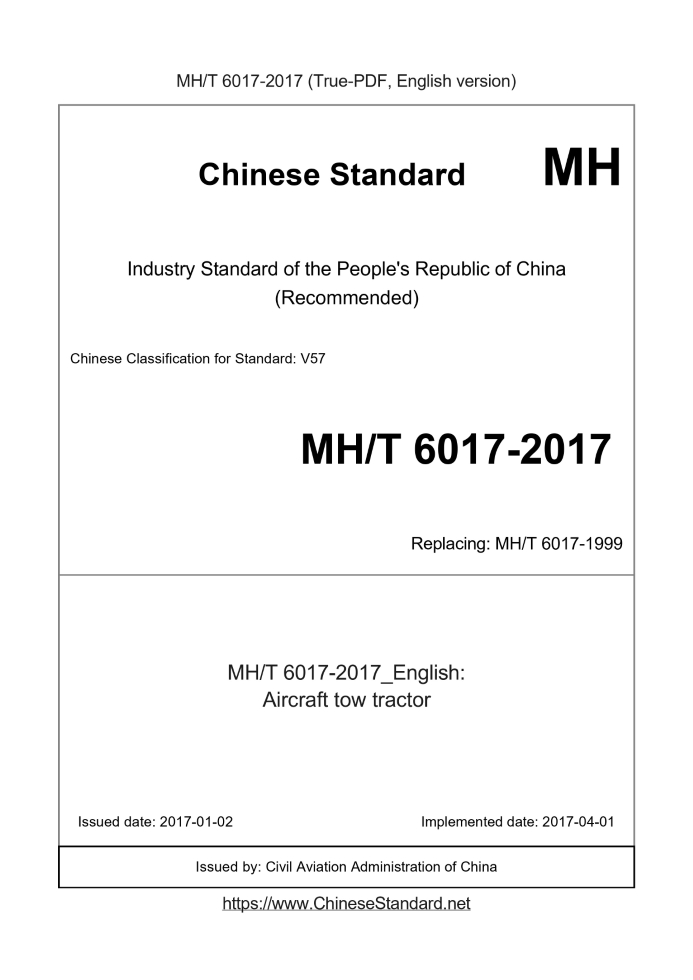 Delivery: <= 4 days. True-PDF full-copy in English will be manually translated and delivered via email. MHT6017-2017: Aircraft tow tractor Status: Valid