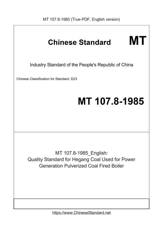 Basic dataStandard ID: MT 107.8-1985 (MT107.8-1985)Description (Translated English): Quality Standard for Hegang Coal Used for Power Generation Pulverized Coal Fired Boiler Sector / Industry: Coal Industry Standard Classification of Chinese Standard: D23 |