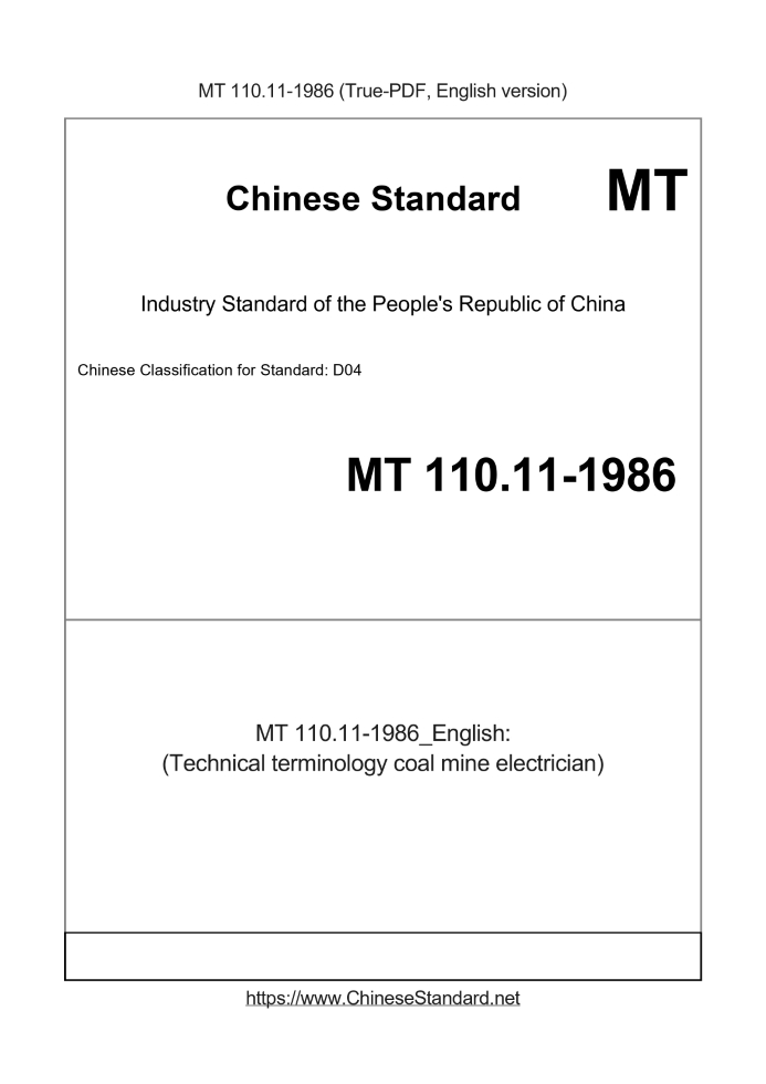 Delivery: <= 3 days. True-PDF full-copy in English will be manually translated and delivered via email. MT 110.11-1986: (Technical terminology coal mine electrician) Status: Obsolete