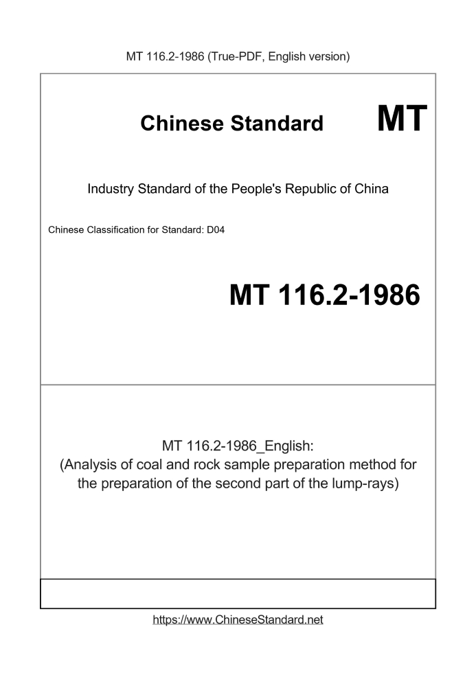 Delivery: <= 2 days. True-PDF full-copy in English will be manually translated and delivered via email. MT 116.2-1986: (Analysis of coal and rock sample preparation method for the preparation of the second part of the lump-rays) Status: Obsolete