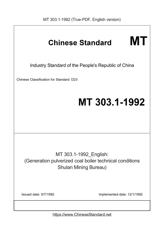 Delivery: <= 2 days. True-PDF full-copy in English will be manually translated and delivered via email. MT 303.1-1992: (Generation pulverized coal boiler technical conditions Shulan Mining Bureau) Status: Obsolete