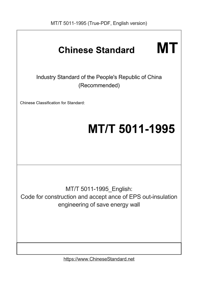 Basic dataStandard ID: MT/T 5011-1995 (MT/T5011-1995)Description (Translated English): Code for construction and accept ance of EPS out-insulation engineering of save energy wall Sector / Industry: Coal Industry Standard (Recommended) Tips & Frequently Asked Questions:Question 1: How long will the true-PDF of MT/T 5011-1995_English be delivered?Answer: Upon your order, we will start to translate MT/T 5011-1995_English as soon as possible, and keep you informed of the progress. The lead time is typically 1 ~ 3 working days. The lengthier the document the longer the lead time.Question 2: Can I share the purchased PDF of MT/T 5011-1995_English with my colleagues?Answer: Yes. The purchased PDF of MT/T 5011-1995_English will be deemed to be sold to your employer/organization who actually pays for it, including your colleagues and your employer's intranet.Question 3: Does the price include tax/VAT?Answer: Yes. Our tax invoice, downloaded/delivered in 9 seconds, includes all tax/VAT and complies with 100+ countries' tax regulations (tax exempted in 100+ countries) -- See Avoidance of Double Taxation Agreements (DTAs): List of DTAs signed between Singapore and 100+ countriesQuestion 4: Do you accept my currency other than USD?Answer: Yes. If you need your currency to be printed on the invoice, please write an email to Sales@ChineseStandard.net. In 2 working-hours, we will create a special link for you to pay in any currencies. Otherwise, follow the normal steps: Add to Cart -- Checkout -- Select your currency to pay. |
