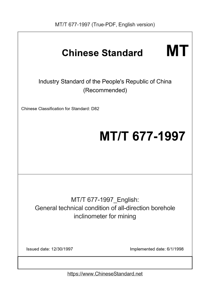 Delivery: <= 3 days. True-PDF full-copy in English will be manually translated and delivered via email. MT/T 677-1997: General technical condition of all-direction borehole inclinometer for mining