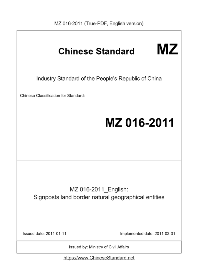 Basic dataStandard ID: MZ 016-2011 (MZ016-2011)Description (Translated English): Signposts land border natural geographical entities Sector / Industry: Chinese Industry Standard Date of Issue: 2011-01-11 Date of Implementation: 2011-03-01 Regulation (derived from): Industry standard filing Notice 2011 No. 3 (No. 135 overall) Issuing agency(ies): Ministry of Civil Affairs Tips & Frequently Asked Questions:Question 1: How long will the true-PDF of MZ 016-2011_English be delivered?Answer: Upon your order, we will start to translate MZ 016-2011_English as soon as possible, and keep you informed of the progress. The lead time is typically 1 ~ 3 working days. The lengthier the document the longer the lead time.Question 2: Can I share the purchased PDF of MZ 016-2011_English with my colleagues?Answer: Yes. The purchased PDF of MZ 016-2011_English will be deemed to be sold to your employer/organization who actually pays for it, including your colleagues and your employer's intranet.Question 3: Does the price include tax/VAT?Answer: Yes. Our tax invoice, downloaded/delivered in 9 seconds, includes all tax/VAT and complies with 100+ countries' tax regulations (tax exempted in 100+ countries) -- See Avoidance of Double Taxation Agreements (DTAs): List of DTAs signed between Singapore and 100+ countriesQuestion 4: Do you accept my currency other than USD?Answer: Yes. If you need your currency to be printed on the invoice, please write an email to Sales@ChineseStandard.net. In 2 working-hours, we will create a special link for you to pay in any currencies. Otherwise, follow the normal steps: Add to Cart -- Checkout -- Select your currency to pay. |