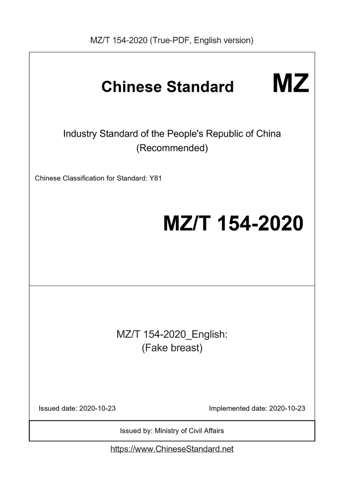 Delivery: <= 4 days. True-PDF full-copy in English will be manually translated and delivered via email. MZT154-2020: (Fake breast) Status: Valid