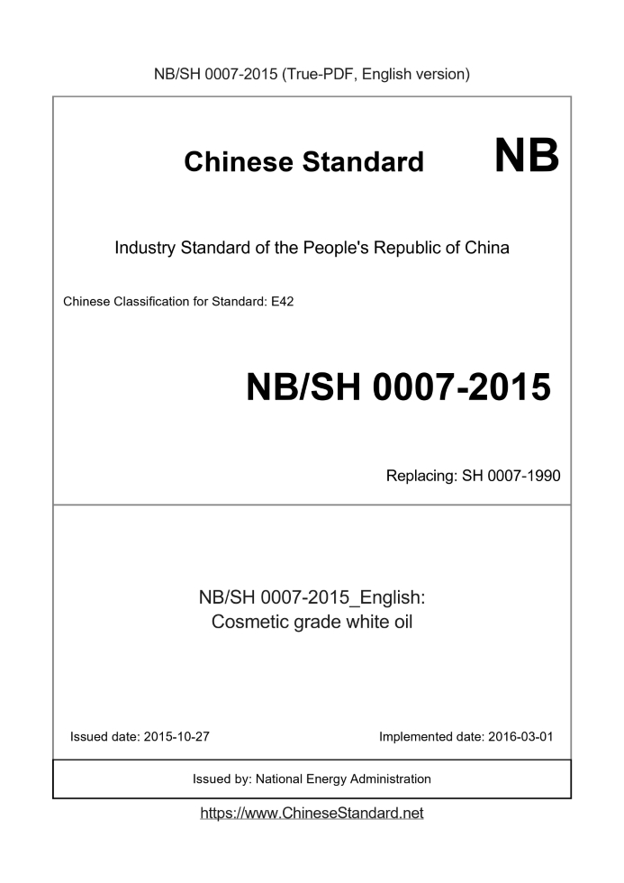 Delivery: <= 3 days. True-PDF full-copy in English will be manually translated and delivered via email. NBSH0007-2015: Cosmetic grade white oil