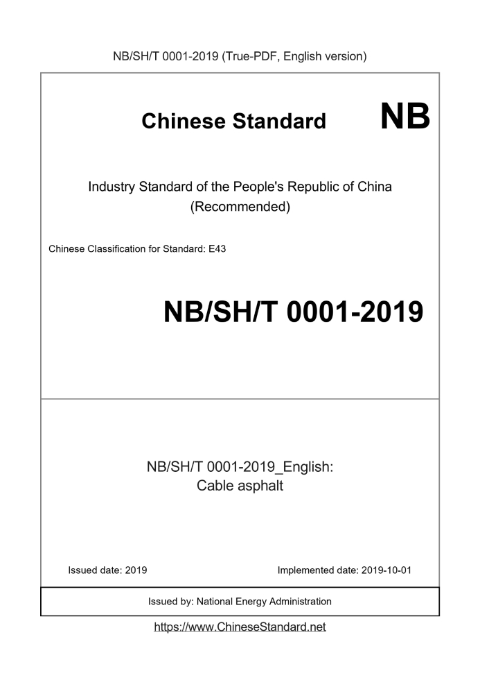 Delivery: <= 3 days. True-PDF full-copy in English will be manually translated and delivered via email. NBSHT0001-2019: Cable asphalt Status: Valid