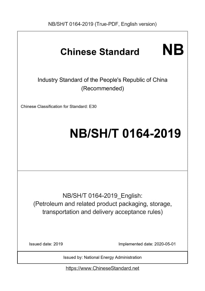 Delivery: <= 5 days. True-PDF full-copy in English will be manually translated and delivered via email. NBSHT0164-2019: (Petroleum and related product packaging, storage, transportation and delivery acceptance rules) Status: Valid
