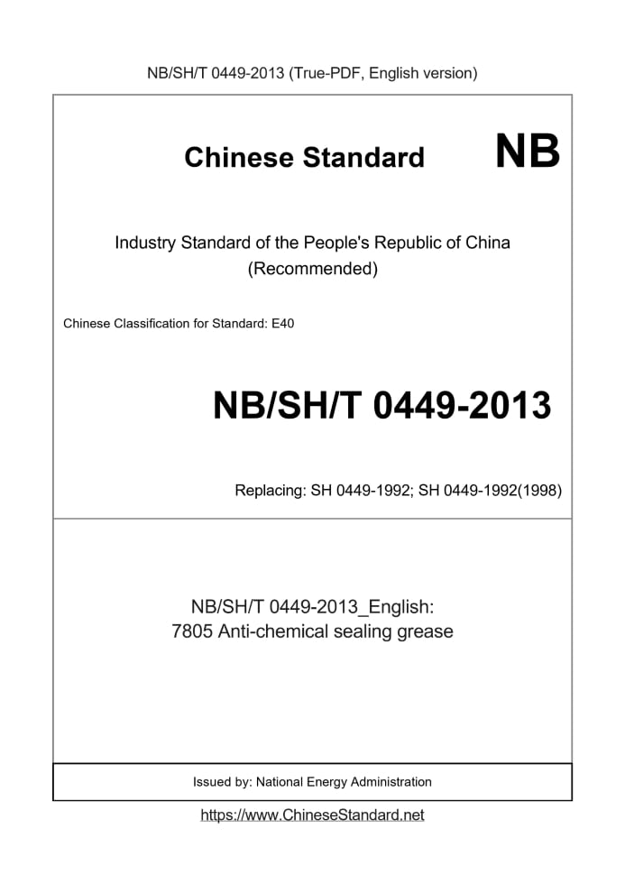 Delivery: <= 2 days. True-PDF full-copy in English will be manually translated and delivered via email. NBSHT0449-2013: 7805 Anti-chemical sealing grease Status: Valid